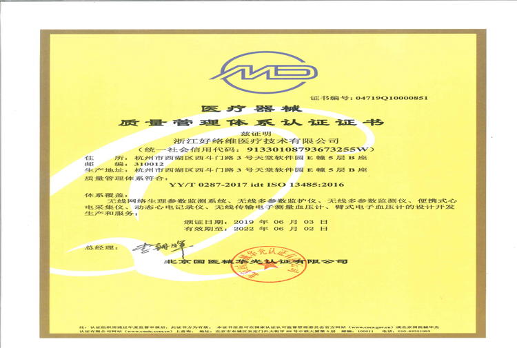 醫(yī)療器械質(zhì)量管理體系認(rèn)證證書ISO13485:2016